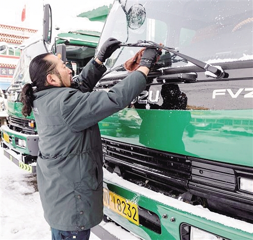 其美多吉在出班前檢查車(chē)輛。經(jīng)濟(jì)日?qǐng)?bào)-中國(guó)經(jīng)濟(jì)網(wǎng)記者 張 雪攝