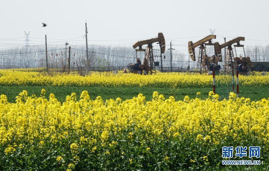 3月23日,在江蘇油田陳堡采油班站,采油機組在工作中。