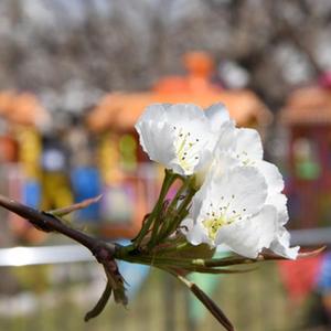 4月5日,游客在皋蘭縣什川鎮(zhèn)古梨園賞花。
