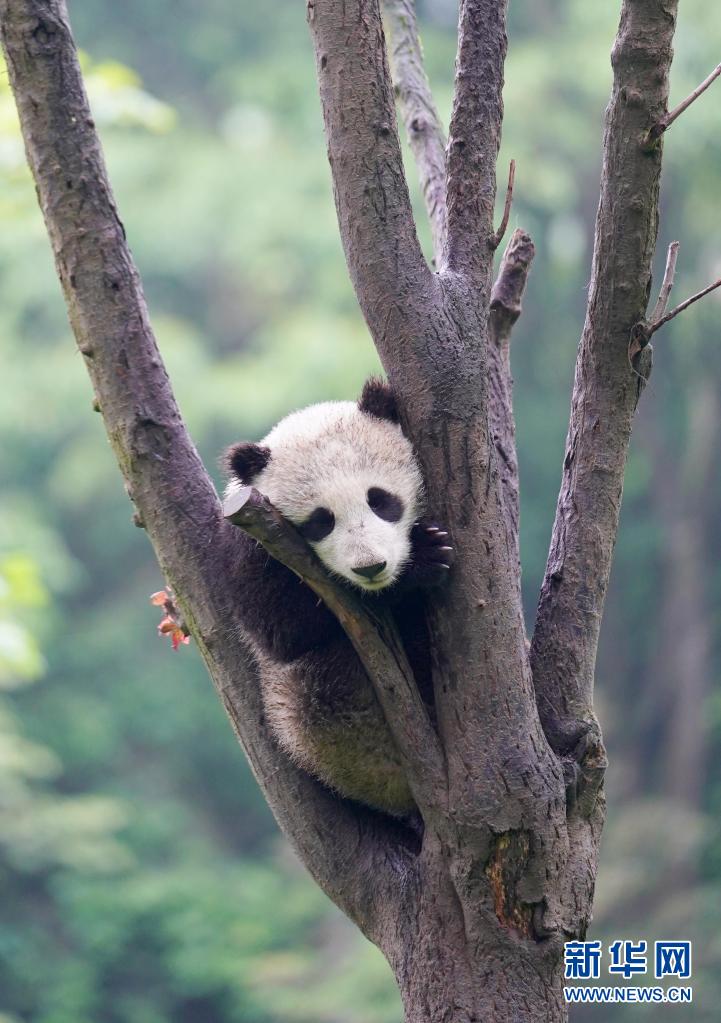 這是5月15日在中國大熊貓保護(hù)研究中心雅安碧峰峽基地拍攝的大熊貓。