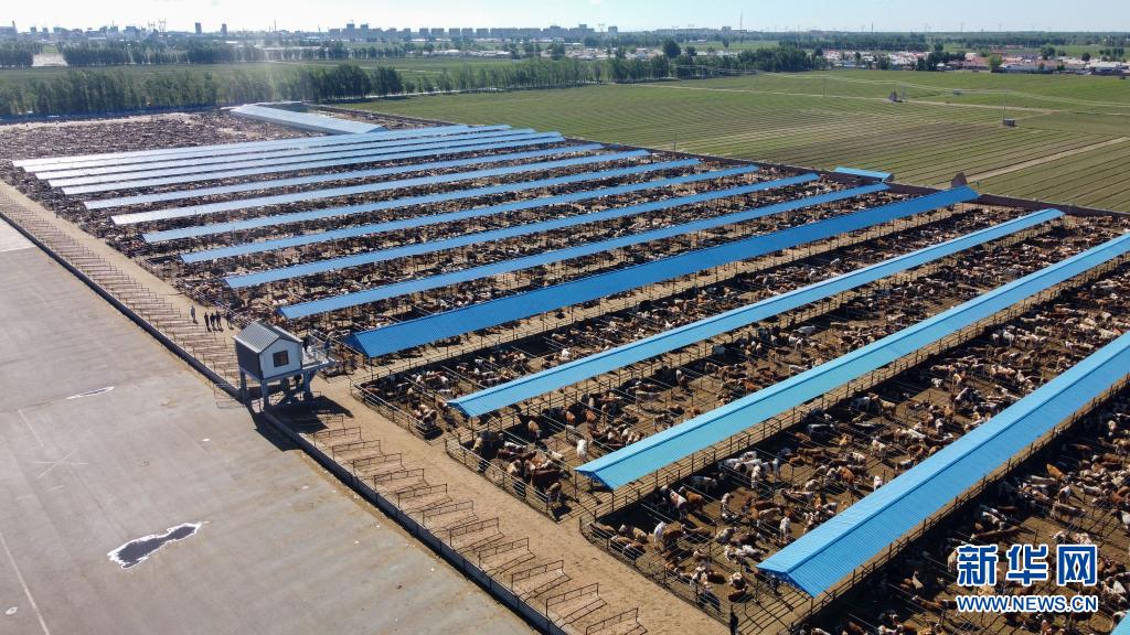 這是6月1日拍攝的開(kāi)魯牛市交易攤位(無(wú)人機(jī)照片)。