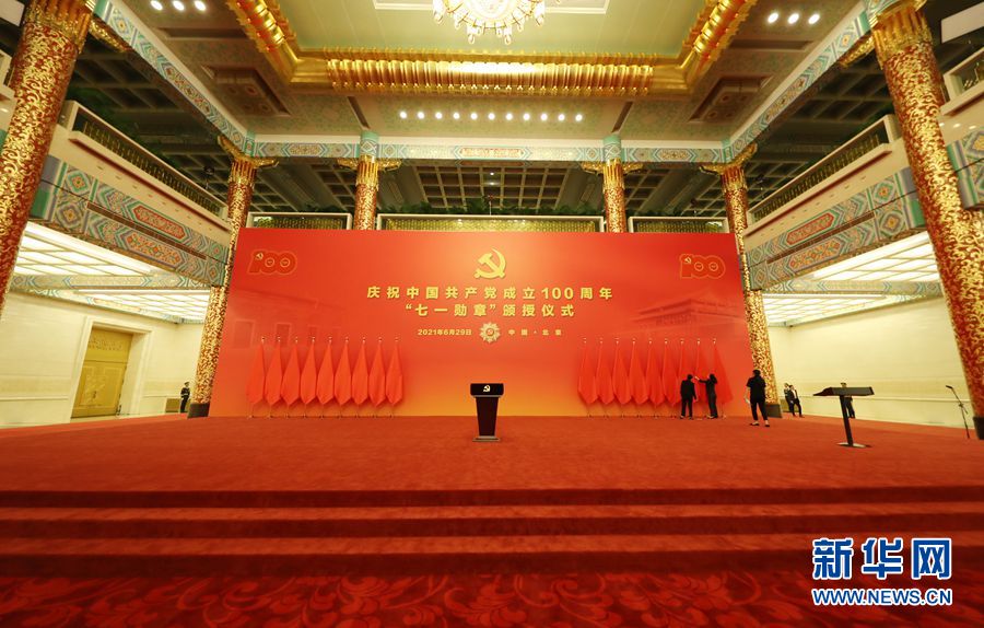 6月29日上午10時(shí),“七一勛章”頒授儀式將在人民大會(huì)堂隆重舉行。新華網(wǎng) 陳杰 攝