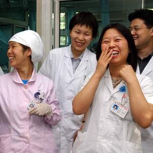 2003年6月24日,北京大學(xué)第一醫(yī)院呼吸科重癥監(jiān)護(hù)病房的醫(yī)護(hù)人員聽(tīng)到世衛(wèi)組織對(duì)北京“雙解除”的消息后,露出勝利的笑容。當(dāng)日,世界衛(wèi)生組織取消對(duì)北京地區(qū)的旅行警告,同時(shí)將北京從有疫情傳播地區(qū)的名單上去除。新華社記者 王呈選 攝