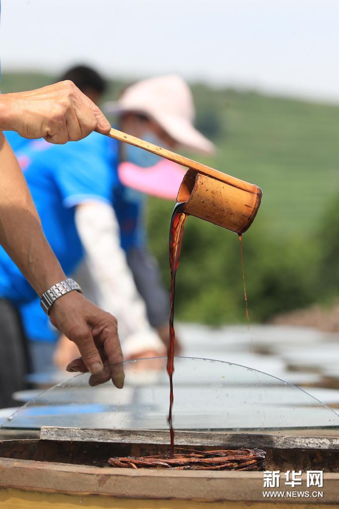 7月10日,工人在畢節(jié)市金沙縣禹謨鎮(zhèn)泡木灣醬醋基地查看醬醋發(fā)酵情況。貴州省畢節(jié)市金沙縣禹謨鎮(zhèn)是傳統(tǒng)醬醋生產(chǎn)大鎮(zhèn),年產(chǎn)陳醋2萬余噸。在長(zhǎng)期的釀造實(shí)踐中,禹謨鎮(zhèn)利用當(dāng)?shù)鬲?dú)特的環(huán)境資源,用100多味中草藥與麥麩制曲,以當(dāng)?shù)貎?yōu)質(zhì)大米、玉米為原料,經(jīng)過70多道工序,經(jīng)一年以上露天發(fā)酵成獨(dú)特的“醬香醋”。該釀醋技藝2019年被列入貴州省級(jí)非物質(zhì)文化遺產(chǎn)名錄。今年以來,禹謨鎮(zhèn)將醬醋產(chǎn)業(yè)與旅游業(yè)結(jié)合起來一體化推進(jìn),把泡木灣醬醋基地打造成國(guó)家3A級(jí)景區(qū),有效拓寬當(dāng)?shù)厝罕娫鍪罩赂煌緩?,走出了一條工旅融合的鄉(xiāng)村振興新路。新華社發(fā)(韓賢普攝)