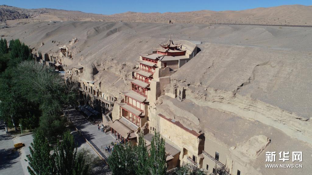 游客在敦煌莫高窟游覽(7月6日攝,無人機(jī)照片)。新華社記者 劉詩平 攝