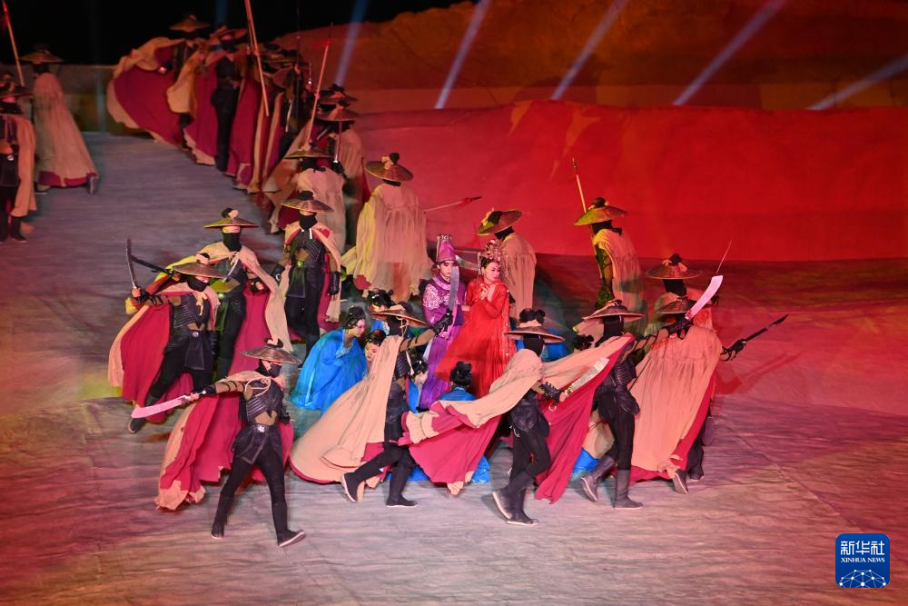 今年以来,脱胎于敦煌文化的洞窟沉浸式体验剧《乐动敦煌》、室内情景体验剧《又见敦煌》、沙漠实景演出《敦煌盛典》和中国残疾人艺术团情景音画剧《千手千眼》四场剧目在丝路名城甘肃敦煌同步上演,剧目将敦煌历史底蕴、服饰文化、乐舞文化等生动融合,为游客呈现出精彩绝伦的敦煌文化视觉盛宴,深受中外游客喜爱。截至8月10日,四大剧目今年已累计演出1175场次,观看游客突破66万人次。其中,《敦煌盛典》以敦煌鸣沙山月牙泉为背景,将沙漠景观与现代舞美结合,将墙体灯光融入实景演出,讲述了一段发生在古丝绸之路重镇敦煌的爱情故事,展示了敦煌的历史文化及人文风貌。