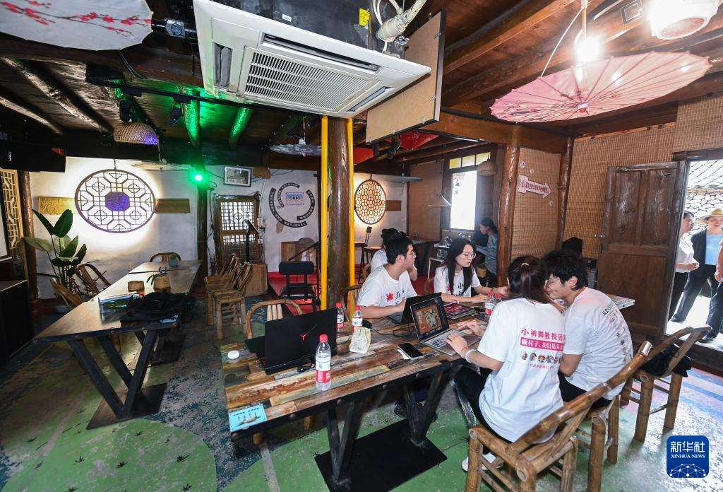 8月11日,高校艺术院系的大学生们在葛家村的特色酒吧内讨论村落艺术改造提升的设计方案。