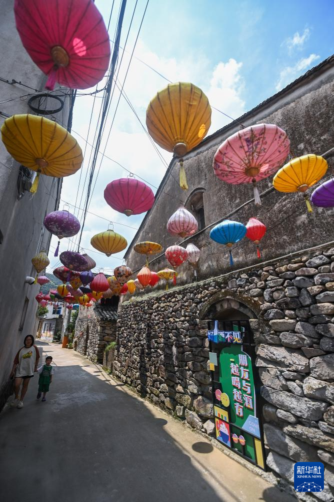 8月11日拍摄的由高校艺术院校师生及当地村民共同打造提升的葛家村特色街巷。