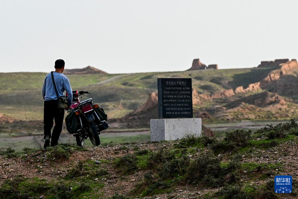 董海宁巡护的长城,属于阿拉善左旗巴润别立镇与宁夏永宁县交界的明长城磨石口段。一辆摩托车、一台望远镜就是他最得力的“助手”。几年来,董海宁或骑行或徒步,定期巡查管辖范围的长城,清除墙体的杂草和垃圾,向游客宣介长城保护知识等。