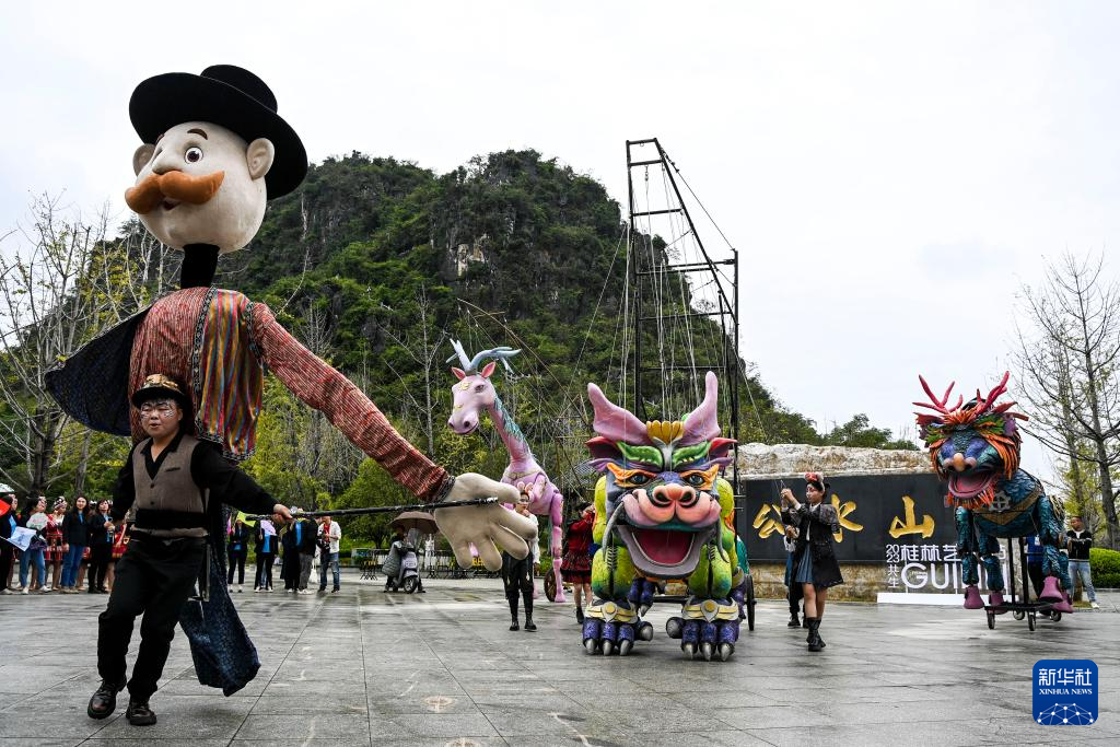 10月27日,在广西桂林市山水公园,演员们在进行戏剧巡游。