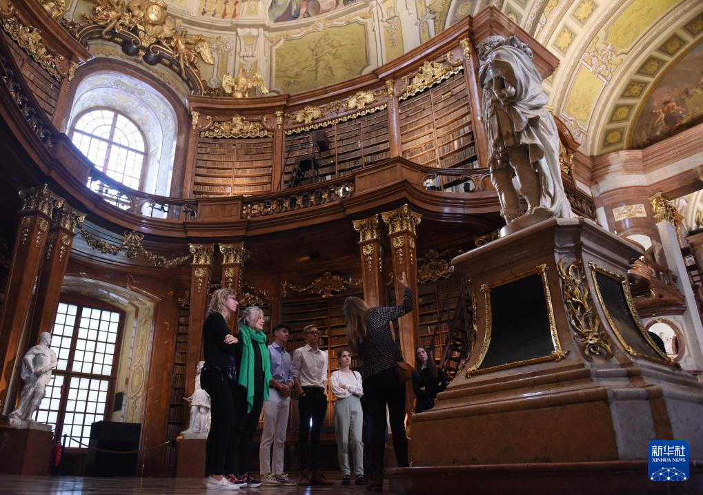 11月7日,游客在位于奥地利维也纳的奥地利国家图书馆普隆克厅内参观。