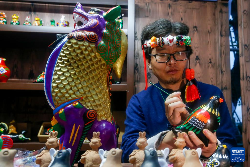 11月10日,非遗传承人王红瑞在第六届中国非物质文化遗产传统技艺大展上展示“浚县泥咕咕”非遗传统技艺。