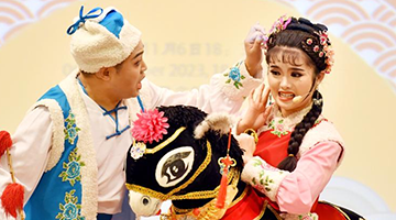 11月11日,在浙江省温州市三垟湿地公园北广场,舞狮队选手在比赛中。