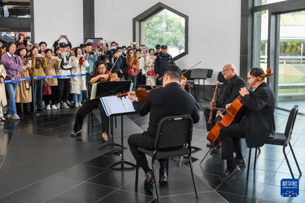 11月16日,费城交响乐团的演奏家们在苏州博物馆大厅内演奏。