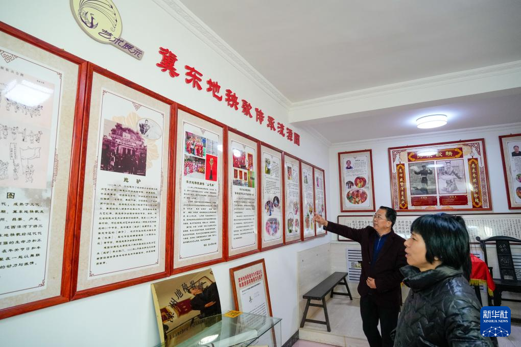 11月22日,群众在河北省滦州市地秧歌艺术收藏馆内了解地秧歌文化。