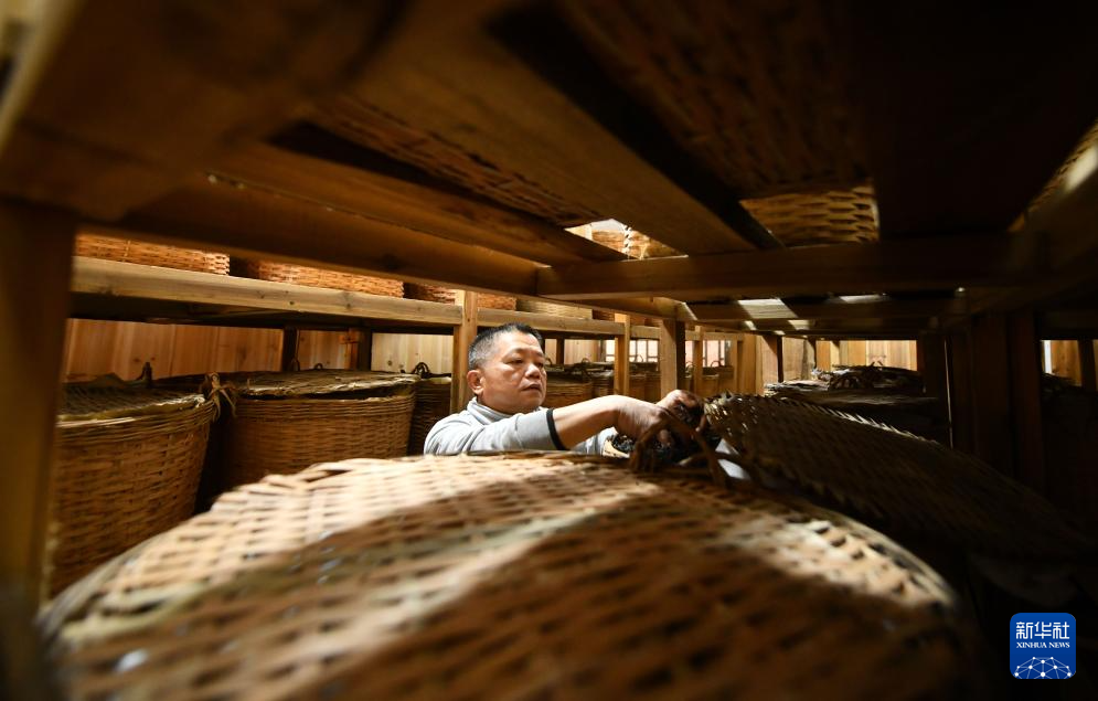 在梧州芙叶茶叶股份有限公司,工人在陈化仓作业(6月8日摄)。