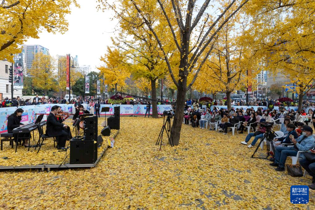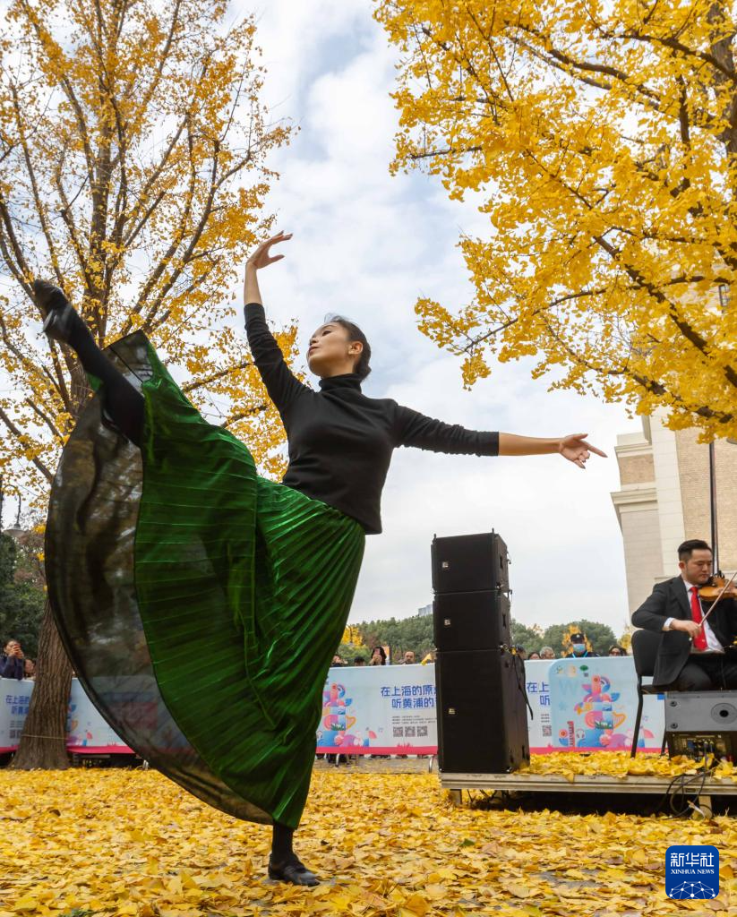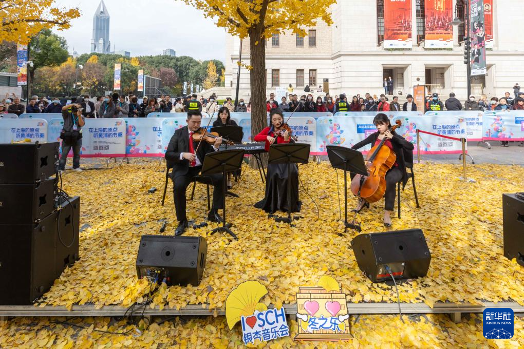 当日,一年一度的“银杏音乐会”在上海音乐厅南广场举行。在银杏树下,上海创·室内乐团青年音乐家们演奏多首四重奏经典佳作,上海芭蕾舞团青年演员跳起冬日华尔兹,为市民带来艺术盛宴。