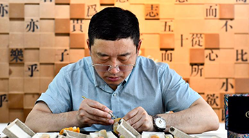 山东曲阜市尼山镇鲁源新村孔府印阁的工作人员在制作印章(2023年6月8日摄)。