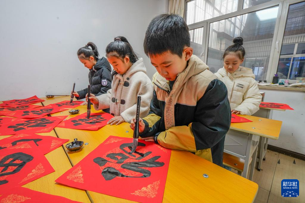 进入寒假,河北省遵化市中小学生学习书法、武术、音乐等,提高才艺水平,充实假期生活。