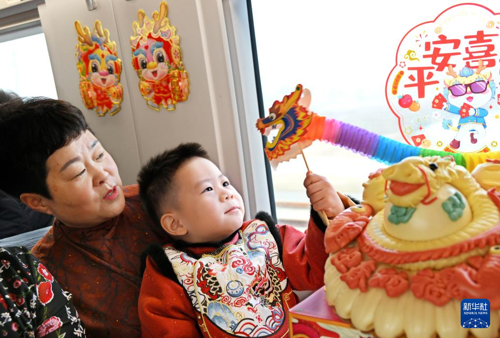 当日,中国铁路济南局集团有限公司青岛客运段在齐鲁环游线G6955次列车上开展“年俗非遗进高铁”活动,让旅客在旅途中感受传统文化的魅力,营造浓郁的节日氛围。