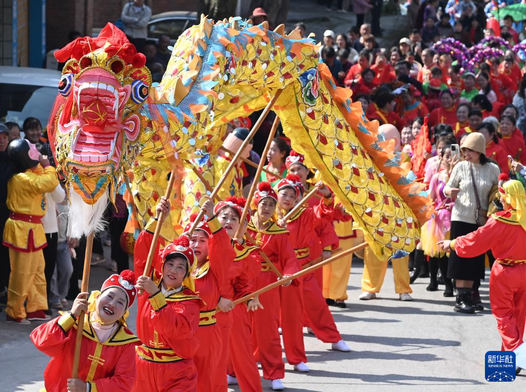 2月19日,人们参加贵州省毕节市百里杜鹃管理区百纳乡舞龙巡游表演。