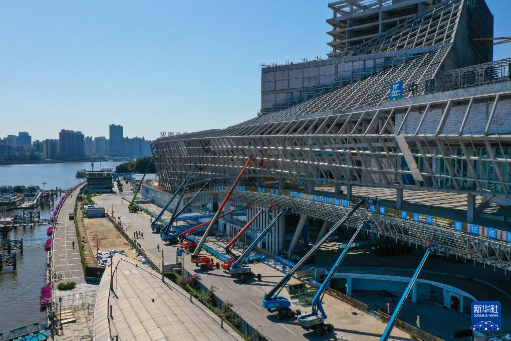 钢结构施工阶段的白鹅潭大湾区艺术中心(2022年10月12日摄)。