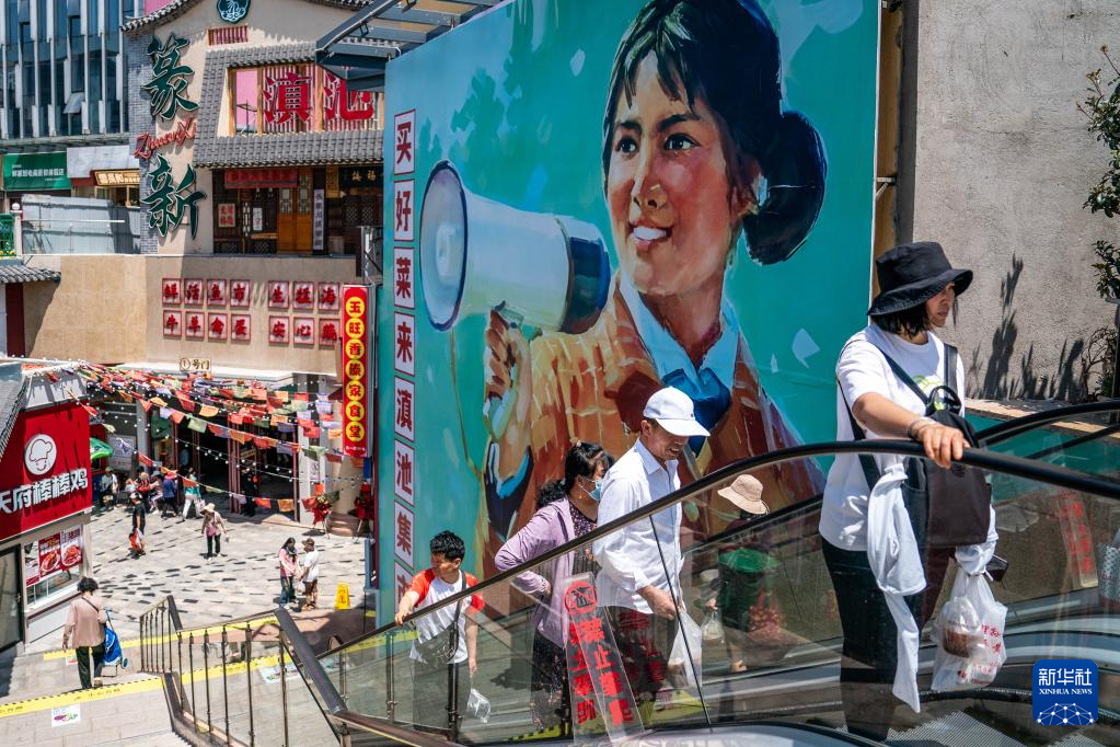 近日,以怀旧风为主题的昆明篆新滇池菜市开业。该市场不仅有传统“菜市场”的肉蛋果蔬购物区,还融入许多老昆明的文化和旅游元素,在方便附近居民买菜的同时,吸引不少市民前来参观,成为体验文化、品味历史的打卡地。