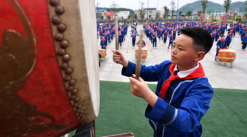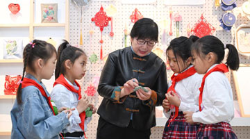赵县北王里镇中心小学的学生在研学课上手工制作赵州桥模型(4月25日摄)。