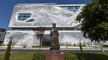 赵县博物馆展出的隋代赵州桥高浮雕龙纹石栏板(4月25日摄)。