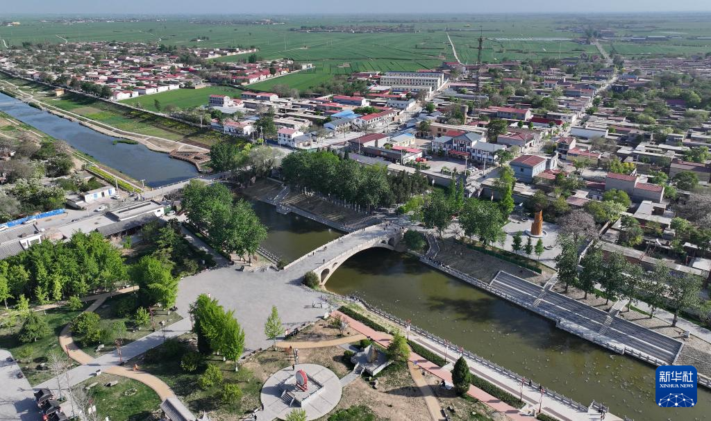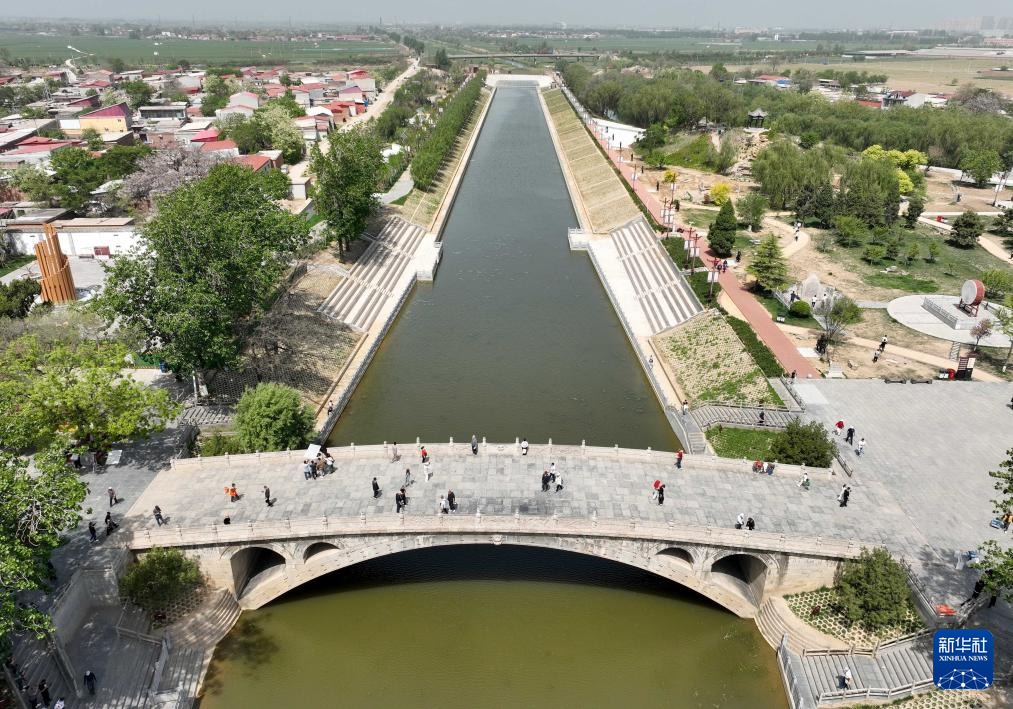 这是赵州桥及周边村庄(4月24日摄,无人机照片)。
