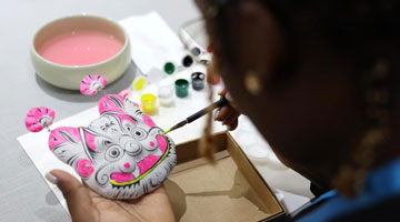 5月21日,在美国华盛顿,来宾在“茶和天下·雅集”活动上体验武汉面塑。新华社记者 刘杰 摄