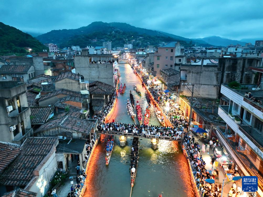 6月9日,福州市长乐区三溪村在夜赛龙舟迎端午。