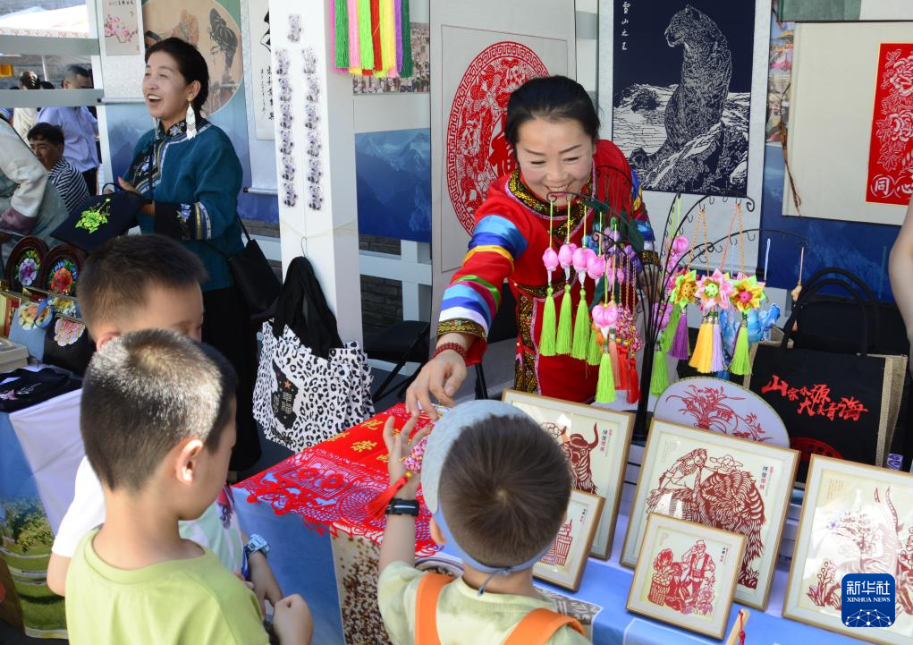 7月18日,来自青海的民间艺术家在活动上展示手工艺品。