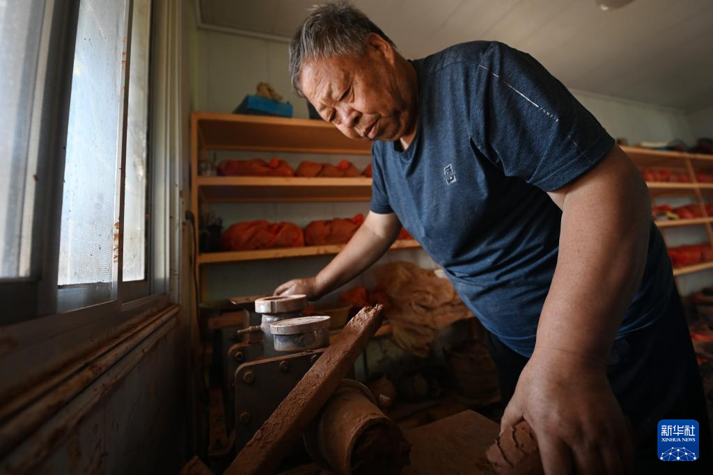 今年64岁的阎建林是甘肃省临洮县洮阳镇河口村村民,从他记事起,爷爷和父亲就在制陶。马家窑文化是我国新石器时代晚期的一种文化类型,距今约5000年,甘肃省定西市临洮县是马家窑遗址所在地。彩陶是马家窑文化显著的特征。