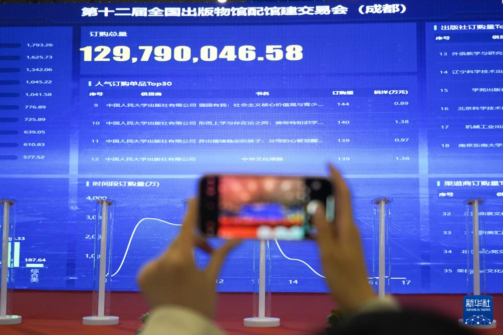 10月11日,参展商在全国出版物馆配馆建交易会现场拍摄实时交易数据。