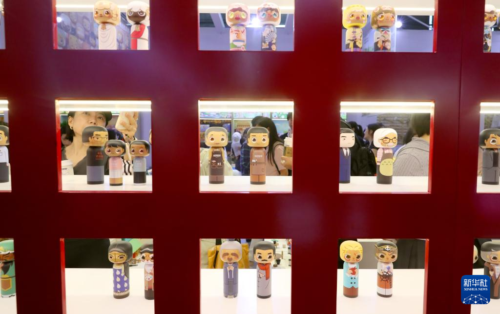 10月16日,参观者在一家拼图品牌企业展台上驻足观看。