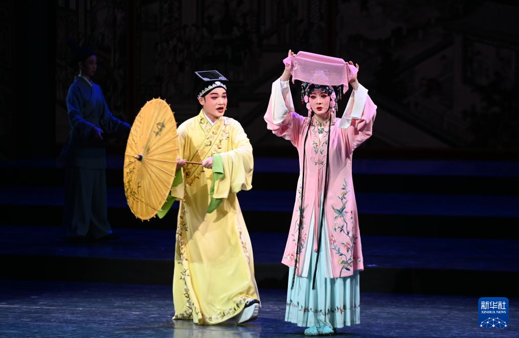 开幕式上的莆仙戏《踏伞行》选段表演(10月21日摄)。