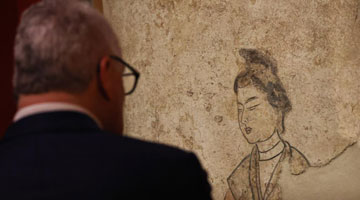 11月24日,人们在萧县“十月古会”书画展览上参观。
