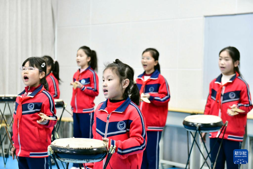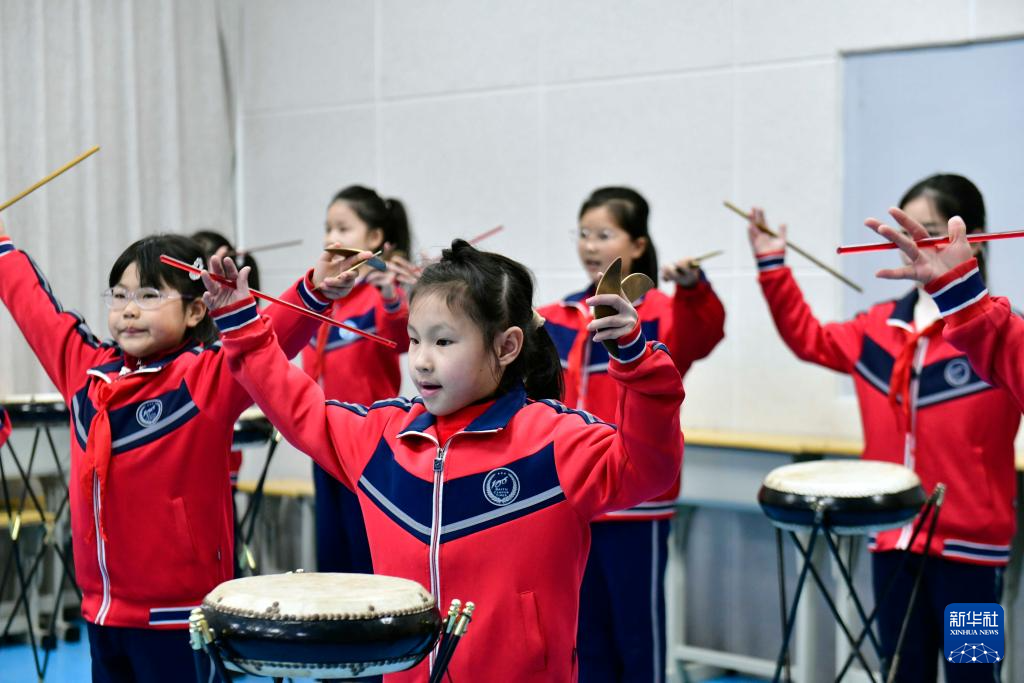 12月30日,在惠民县胡集镇第一小学,同学们学习西河大鼓。