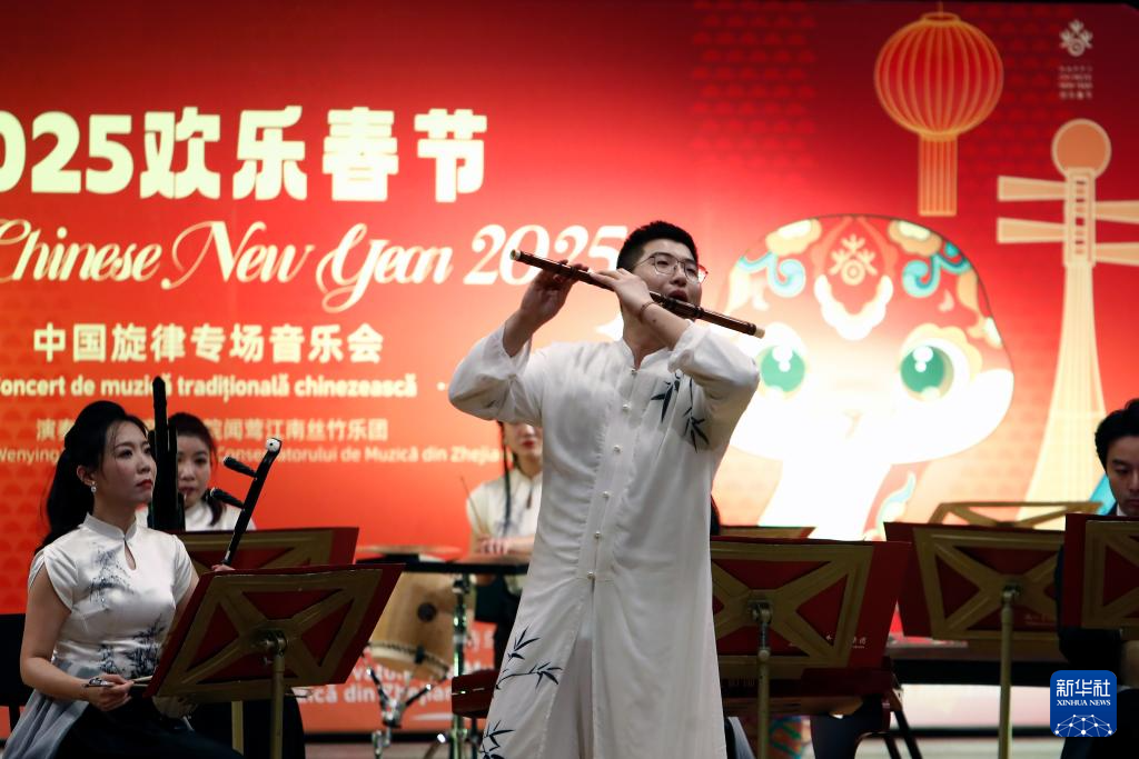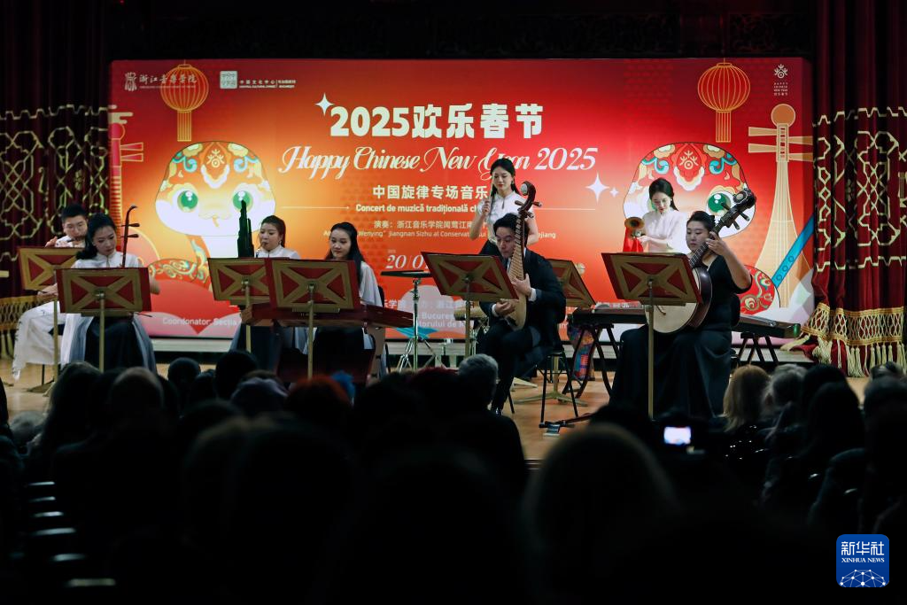 1月20日晚,由中国浙江音乐学院闻莺江南丝竹乐团带来的2025“欢乐春节”中国旋律专场音乐会在罗马尼亚布加勒斯特的雅典娜音乐厅举行。