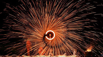2月5日,苗族姑娘在融水苗族自治县杆洞乡百鸟衣芦笙坡会上进行民俗展演。