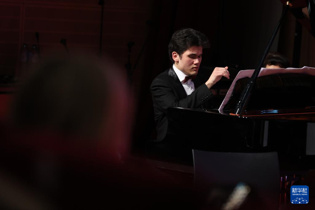 2月15日,比利时华裔青年钢琴家郭鑫冉在布鲁塞尔中国文化中心新春音乐会上演奏。