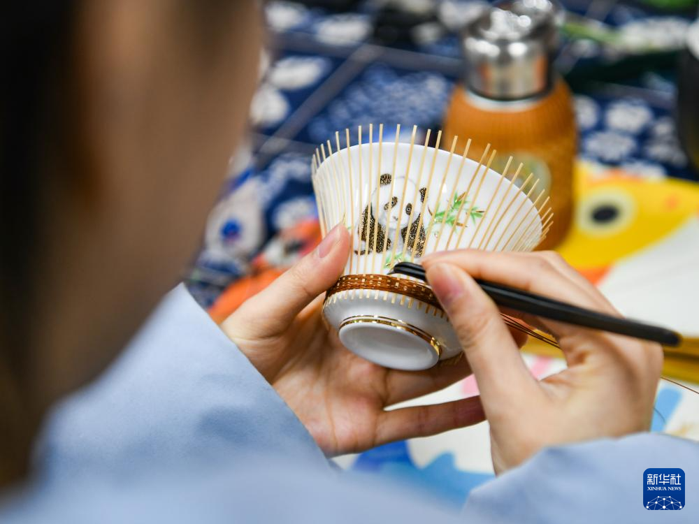 新华全媒+|“熊猫抱竹”绕纤丝 非遗盖碗飘茶香