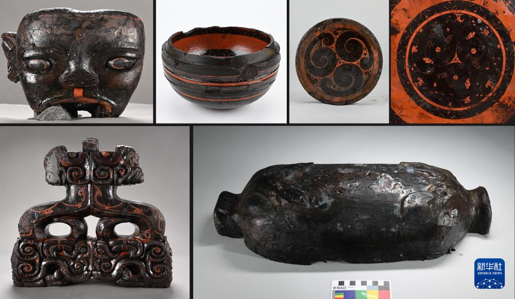 安徽淮南武王墩一号墓出土的部分漆器(拼版照片,资料照片)。新华社发(安徽省文物考古研究所供图)