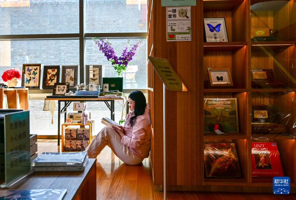 一名女子在位于北京前门大街的Page One书店阅读(3月27日摄)。