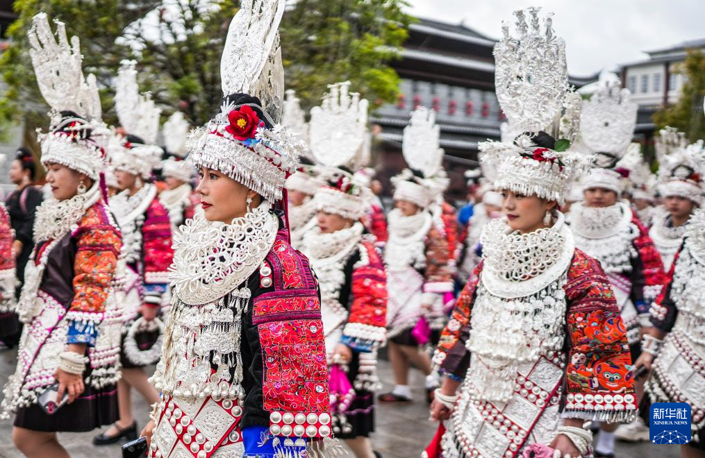 当日,在贵州省黔东南苗族侗族自治州台江县,万余名苗族群众身着盛装,庆祝一年一度的姊妹节。“苗族姊妹节”是贵州台江县苗族同胞的传统节日,2006年被列入第一批国家级非物质文化遗产名录。