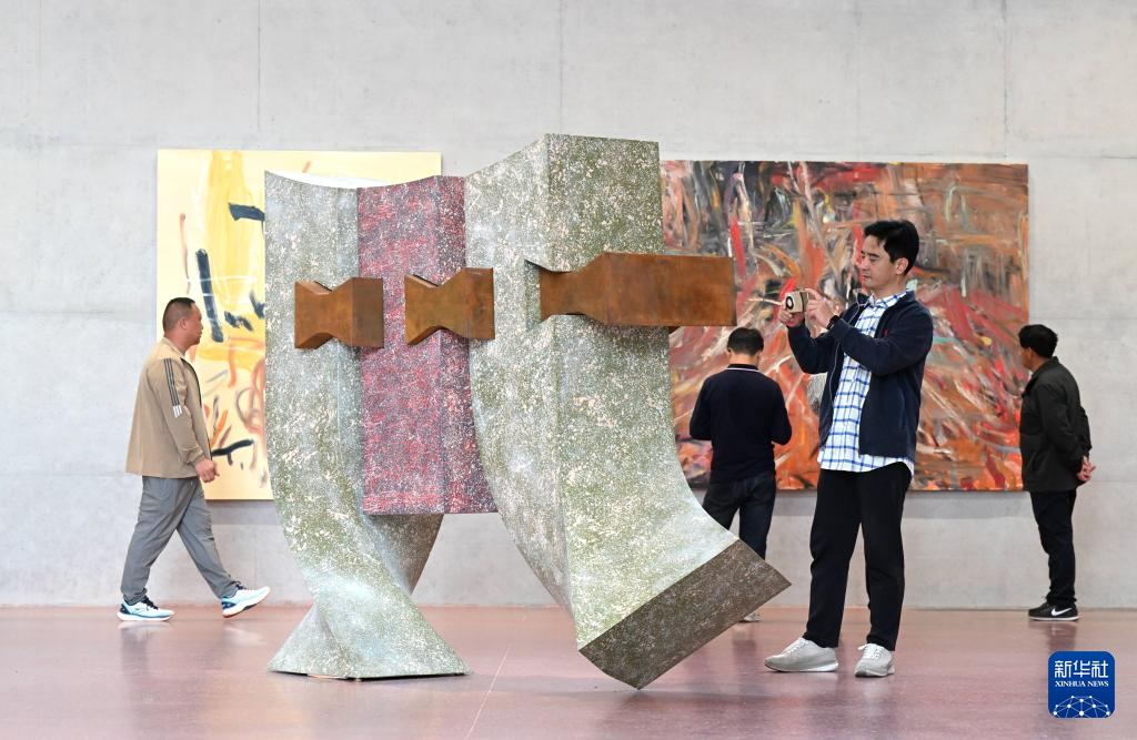 5月7日,游客在赞皇县岩美术馆参观。