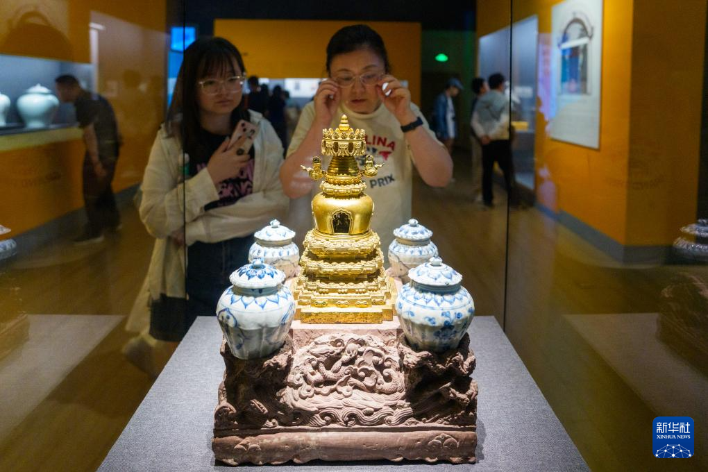 5月18日,人们在位于宁夏银川的宁夏博物馆参观“匠心复华”文物保护修复成果展。