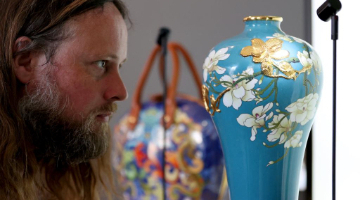 5月16日,游客在位于海南五指山的海南省民族博物馆观看黎族制陶工具。