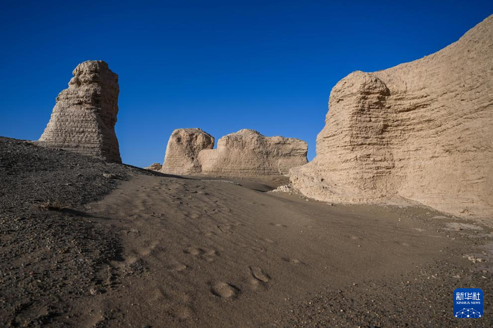 这是11月3日在内蒙古阿拉善盟额济纳旗拍摄的居延遗址中的汉代甲渠候官遗址。
